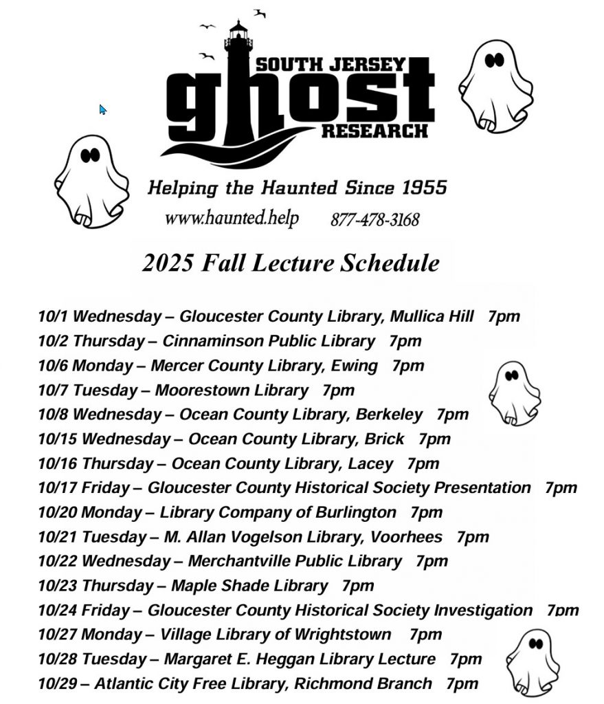 In addition to doing lectures at libraries, colleges and historical societies, we also run public investigations at haunted locations all over the area. SJGR is part of Haunted Explorations Events and paid events like investigations are all listed on the Haunted Explorations Events website and on Facebook. Ticket links the paid events are also on those pages.